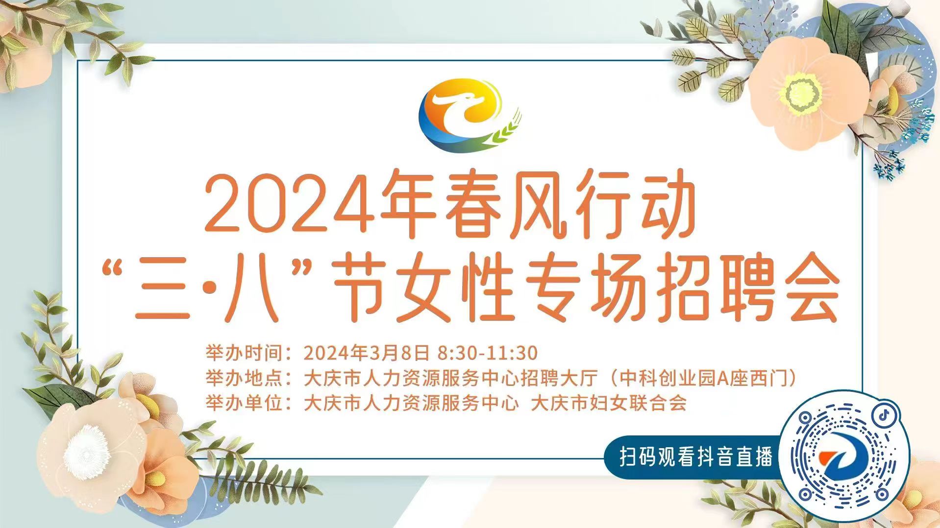 3月8日,大慶市人力資源服務(wù)中心與大慶市婦女聯(lián)系合會共同舉辦了2024年春風(fēng)行動”三八“節(jié)女性專場招聘會。