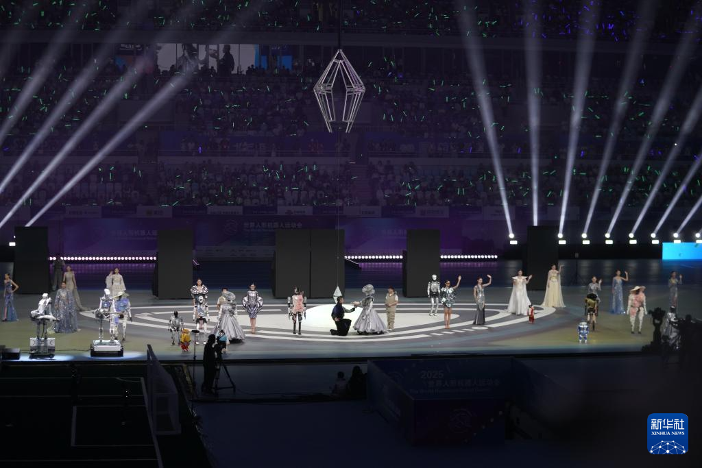 ??歌舞節(jié)目《歡迎來到碳基生命的世界》中,人類舞者與機器人以流暢協(xié)作演繹“碳基與硅基的對話”;服飾走秀節(jié)目《天工霓裳》則將非遺技藝與未來設計完美融合……14日的開幕式上,超百支戰(zhàn)隊閃耀“冰絲帶”,各式機甲競展風采,機器人街舞、戲曲輪番登場,更與專業(yè)街舞團聯(lián)袂獻藝,生動演繹科技與人類文明的碰撞交融。隨著舞臺中央的“智芯”裝置——鑲嵌藍色晶體芯片的金屬四棱錐被點亮,2025世界人形機器人運動會正式啟動。