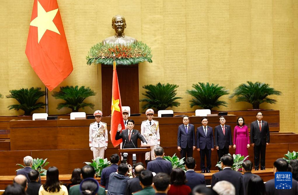 ??梁強隨后宣誓就職。他在發(fā)表就職演說時表示,將根據(jù)越南社會主義共和國憲法以及黨、國家和人民賦予的任務,履行好國家主席的職責,繼續(xù)保持和加強黨內(nèi)的高度團結,與全黨全軍一道弘揚民族大團結力量。